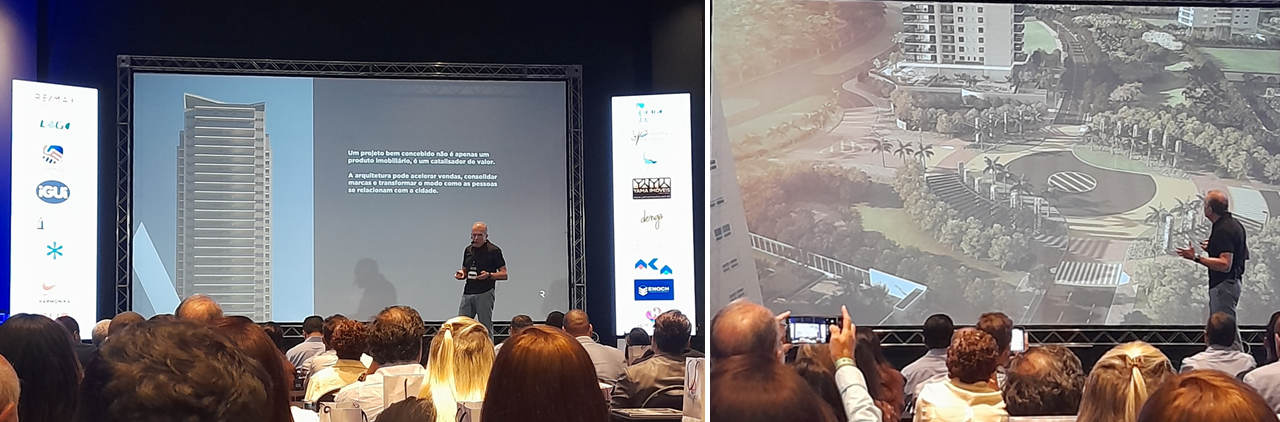 Um dos palestrantes foi o arquiteto Fernando Rivaben, parceiro da Habiarte em diversos projetos, incluindo os edifícios Cidade de Vancouver, Cidade de Montreal e Cidade de Zurique, mencionados em sua apresentação, bem como o bairro Ilhas do Sul.