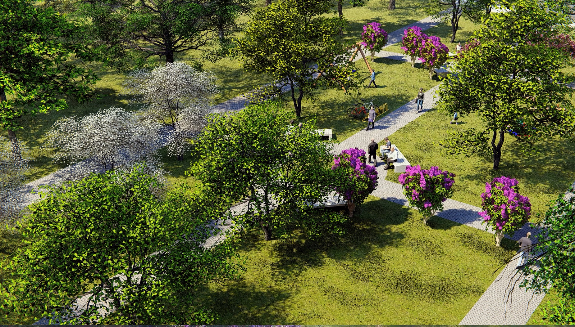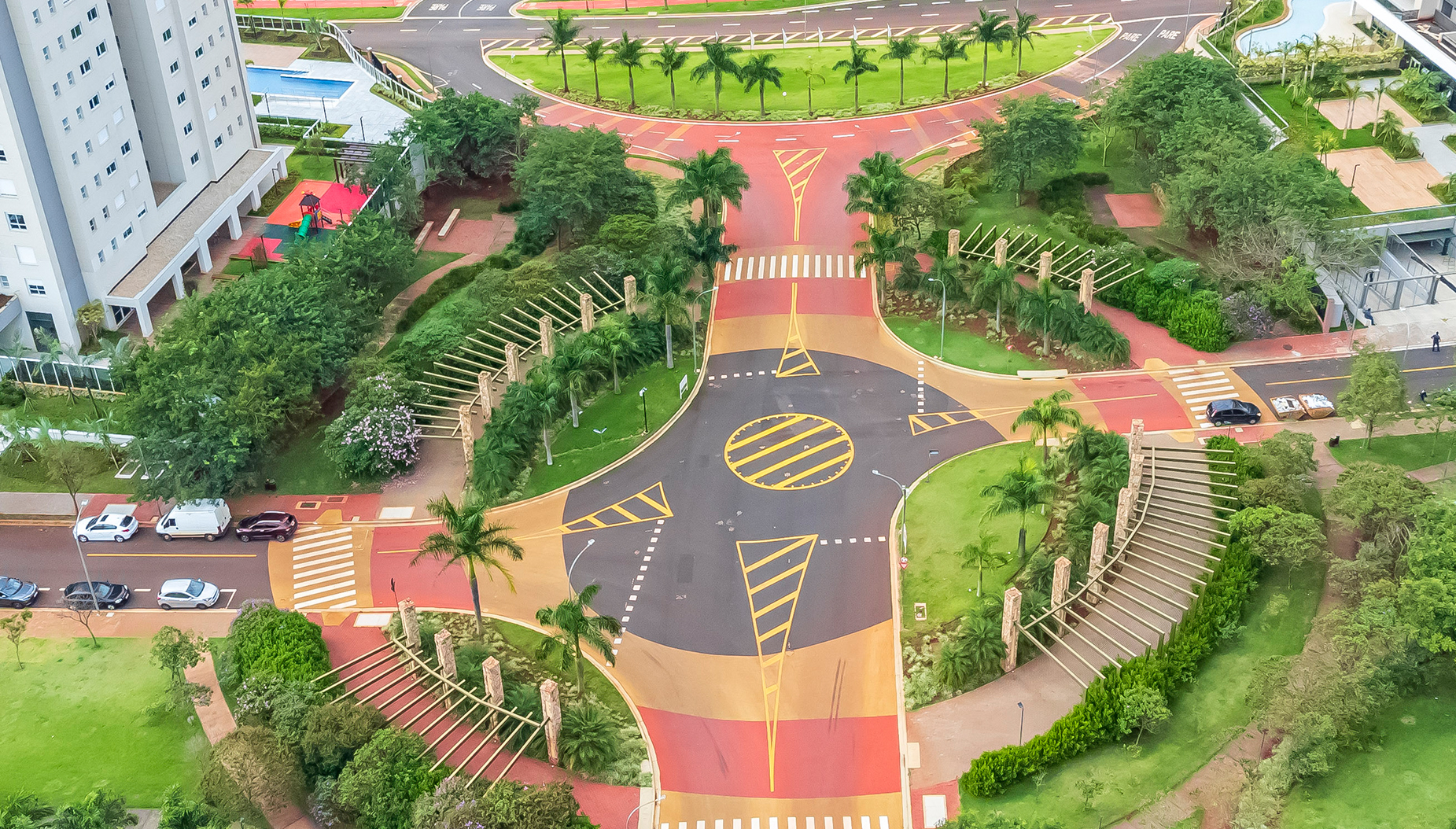 O detalhe das ruas arborizadas e praças de lazer