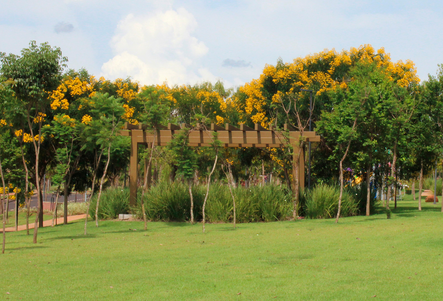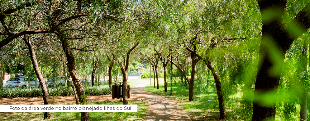 Foto da área verde no bairro planejado Ilhas do Sul